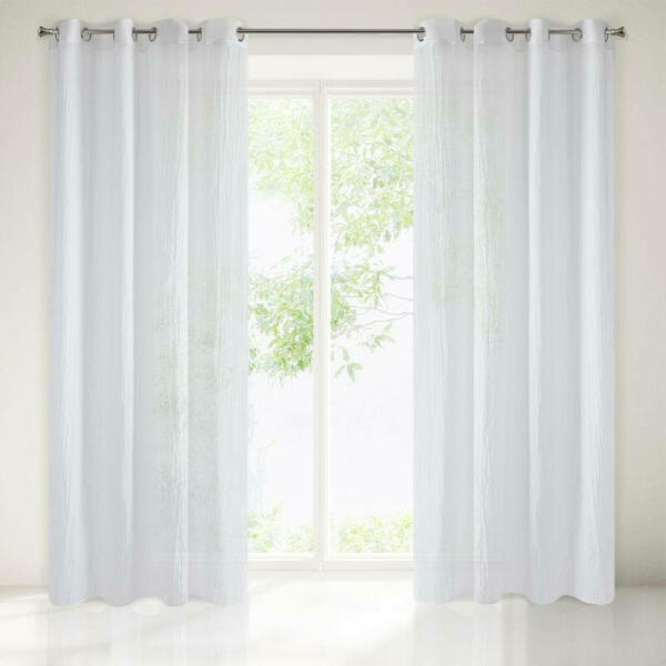 100%polieszter, 160cm magas, 190cm széles, tetején ráncolóval, mellyel a kívánt méretre behúzható, alján ólommal, fényáteresztő,