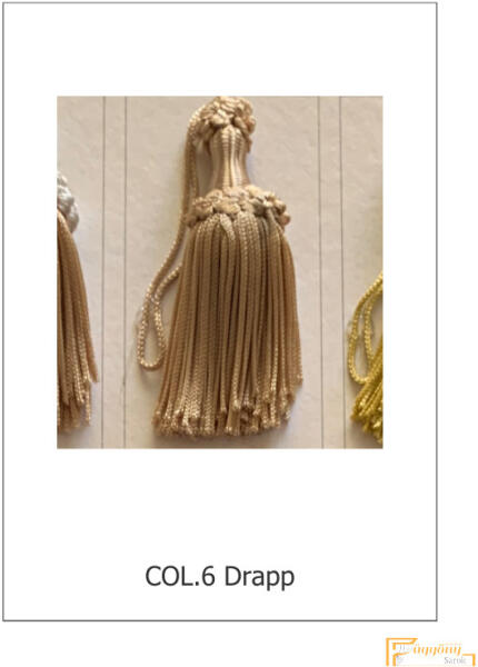 ◤ Kategória: Paszományok ◤ Mérete: 9 cm ◤Zsinór vastagsága: 2 mm ◤ Szín:drapp ◤ Anyagösszetétel: 90% acetát, 10% polipropilen Kategória: Paszományok Szín: drapp Anyagösszetétel: 90% acetát, 10% polipropilen Minimum rendelhető mennyiség: 5db A teljes magasság: 9 cm, a csüngő rész magassága: 7 cm a záró kalap magassága: 2 cm, akasztó zsinór hossza: 10 cm. A függ