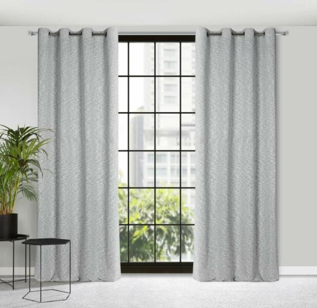 Kész függöny kiváló minőségű dekoratív anyagból, tartós és erős 100% poliészter anyagból. Az ezüst gyűrűk pántja nagyon jól tolerálja a kezelési eljárásokat, és gazdag színe hosszú használat után sem veszíti el vitalitását.