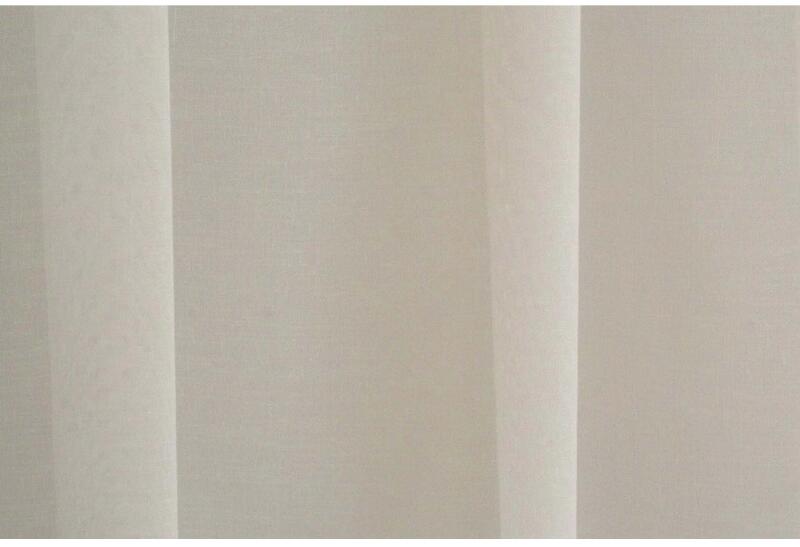 140 cm x 245 cm méretű, természetes hatású ecrü színű fényáteresztő függöny ráncolószalaggal, összetétele: 100% poliészter.