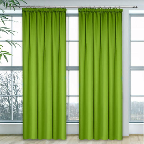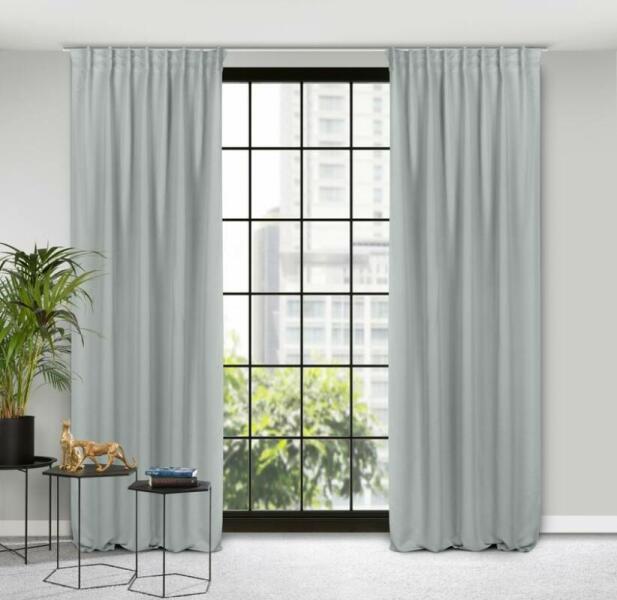 sötétítő drapéria, súly 260g/m2, nem engedi át a napfényt, megakadályozza a zaj behatolását, felvarrt univerzális ráncolószalag, szegélyei beszabva, csipeszre vagy kampóra rögzíthető.