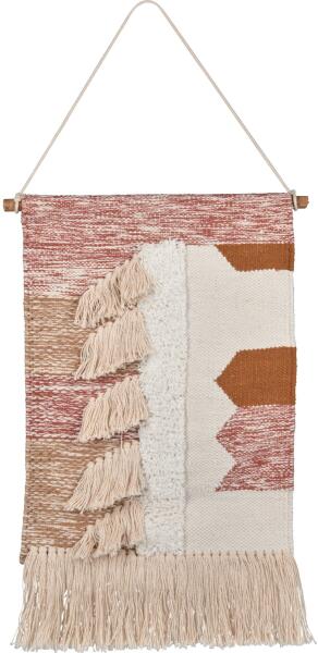 Az aktuális Desert Flower trendkollekcióhoz illeszkedő modern falidísz remekül illik a szoba hangulatához. A faliszőnyeg meleg színkombinációjának köszönhetően kellemes hangulatot teremt. Ugyanakkor figyelemfelkeltő látványt nyújt a rojtokkal ellátott különböző kötési technikáknak köszönhetően. A bézs és barna különböző árnyalataival rendelkező falidísz anyaga