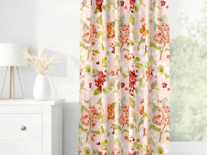 kész dekoratív drapéria, 100 % poliészter, súly 160g/m2, felvarrt univerzális ráncolószalag, szegélye beszabva, csipeszre vagy kampóra rögzíthető.