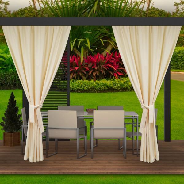 Időjárási viszonyoknak ellenálló, napfénynek ellenálló kerti függöny, amelynek köszönhetően a színek nem fakulnak el a napfényben. A vízálló tulajdonságának köszönhetően a teraszfüggönyök megvédnek minket az esőtől, ugyanakkor hangulatossá teszik a pavilonot vagy a teraszt. Az ár 1 darab függönyre vonatkozik.