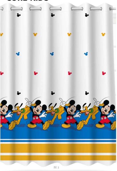 Gyerekmintás, nyomott Voile, Mickey egeret ábrázoló mintával, mint fő motívummal, ólomzsinórral. A függönyt az áruházban az Ön által kívánt méretre vágják.