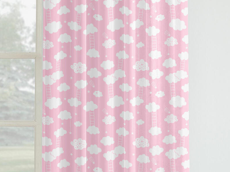 pamut drapéria, felvarrt univerzális ráncolószalag, szegélye beszabva, 100 % pamutszövet, súly 145g/m2, csipeszre vagy kampóra rögzíthető.