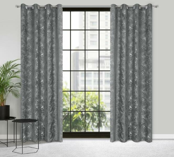 A puha bársonyból készült Livia függöny elegáns, otthonos megjelenését a teljes felületét beborító dombornyomott mintának köszönheti. A vastagabb mintát vékony, átlátszó elemek szövik át, melynek köszönhetően korlátozza a szobába jutó napfényt, de mégis világos, kellemes hangulatot biztosít. A Livia áttört pálmalevél mintás bársony függöny Acélszürke 140x