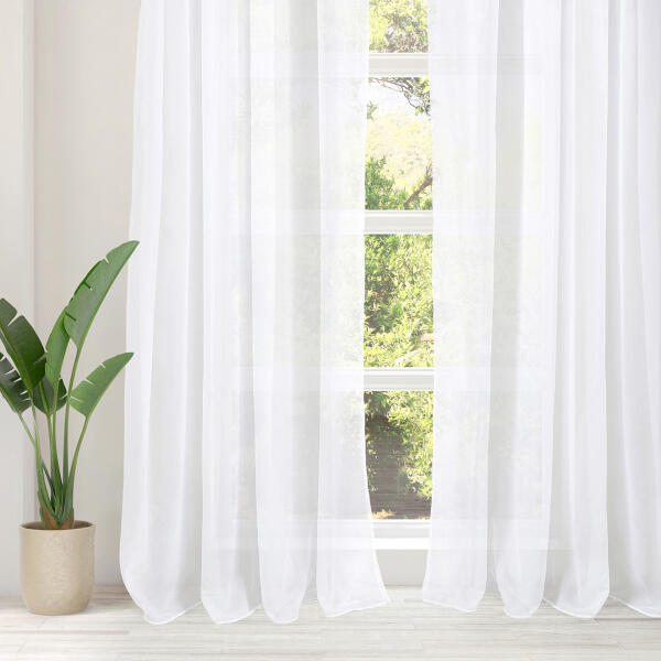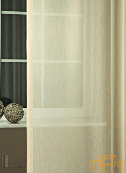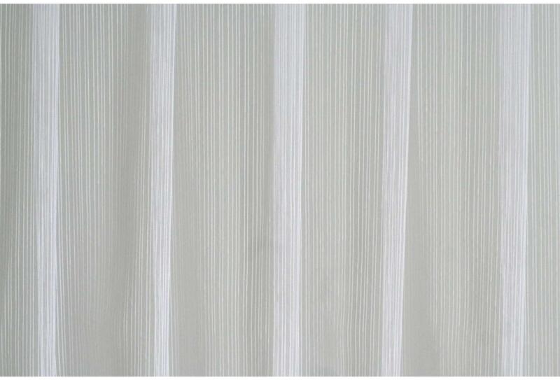 Fehér színű, függőleges vastagabb szálakkal átszőtt fényáteresztő függöny, melynek nagyon jó a tartása. Összetétele poliészter. A függönyt az áruházban az Ön által kívánt méretre vágják.