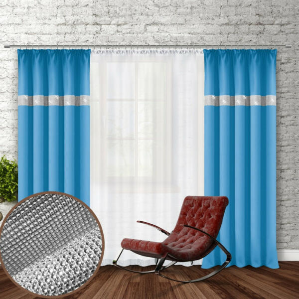 sötétítő drapéria, súly 260g/m2, nem engedi át a napfényt, megakadályozza a zaj behatolását, felvarrt univerzális ráncolószalag, szegélyei beszabva, csipeszre vagy kampóra rögzíthető.