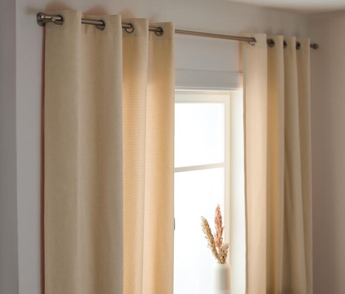 dekoratív szövet Rongo, 100 % poliészter, sima, nem gyűrődő, színstabil szövet, felvarrt univerzális ráncolószalag, szegélye beszabva, csipeszre vagy kampóra rögzíthető.