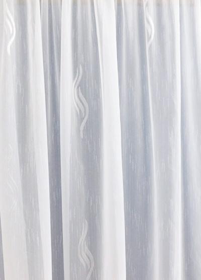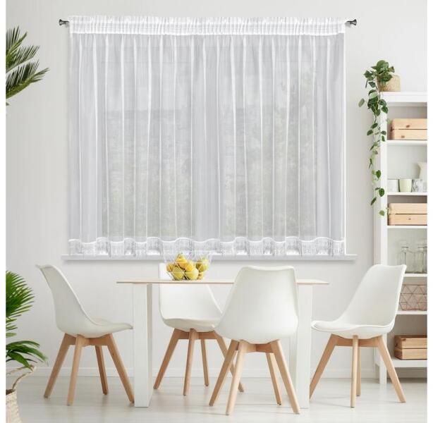 100%polieszter, 260cm magas, 140cm széles, tetején ráncolóval, alján ólommal, modern nyírt mintázatú hófehér voila kész függöny, vasalást nem igényel,