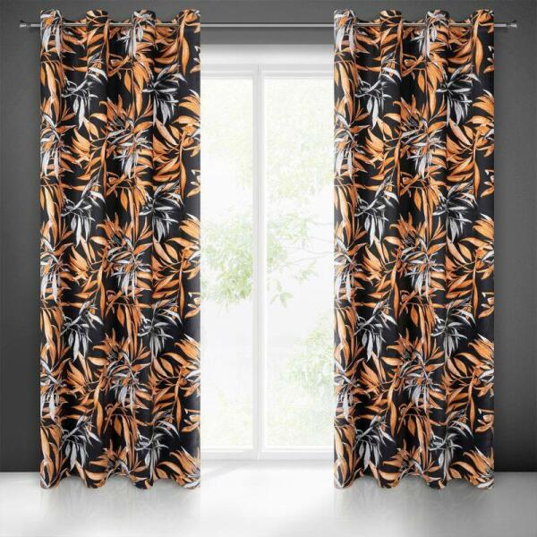 Bársony sötétítő függöny nyomtatott mintával, szélesség: 140 cm, hossz: 250 cm, színe: fekete/vörös. Grammsúly: 200 GSM. Összetétel: 100% poliészter