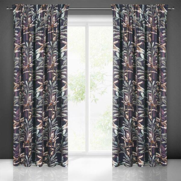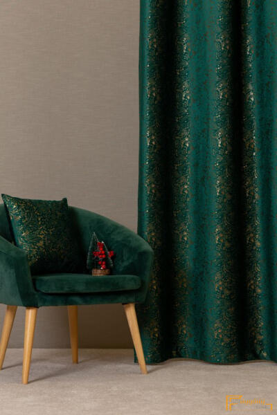 Bársony sötétítő függöny nyomtatott mintával, szélesség: 140 cm, hossz: 270 cm, színe: fekete/zöld. Grammsúly: 200 GSM. Összetétel: 100% poliészter
