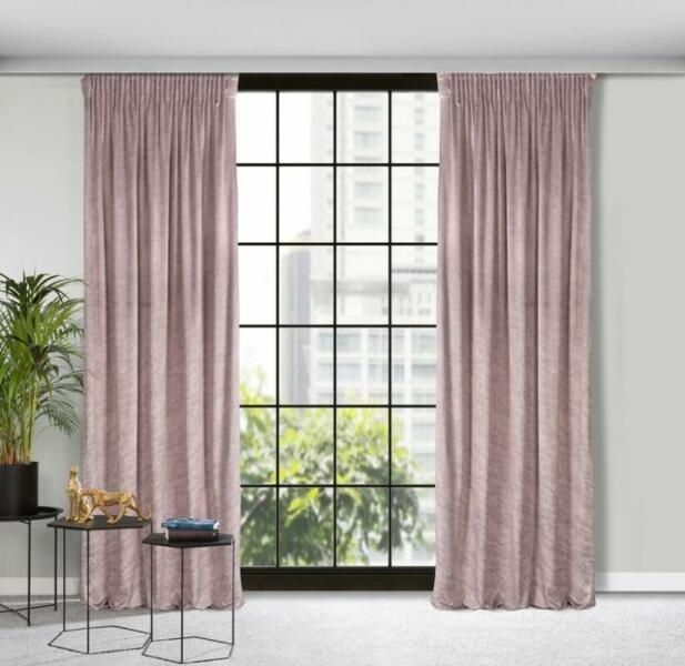 pamut drapéria, felvarrt univerzális ráncolószalag, szegélye beszabva, 100 % pamutszövet, súly 145g/m2, csipeszre vagy kampóra rögzíthető.