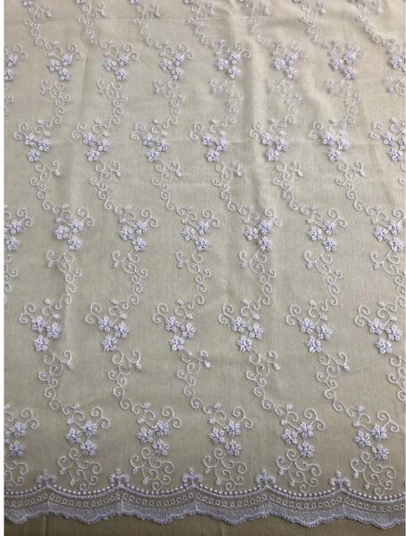 Telemintás, hímzett függöny, könnyű, hálószerű, fényáteresztő alapanyagon. A függönyt az áruházban az Ön által kívánt méretre vágják.