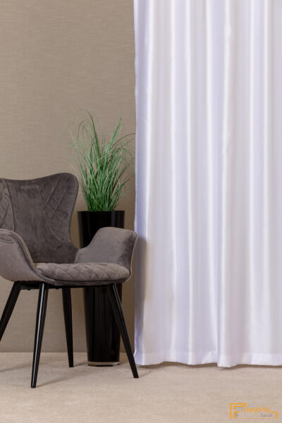dekoratív drapéria Loneta, Spanyol szövetből varrva, súly 190g/m2, felvarrott univerzális ráncolószalag, szegélye beszabva, csipeszre vagy kampóra rögzíthető.