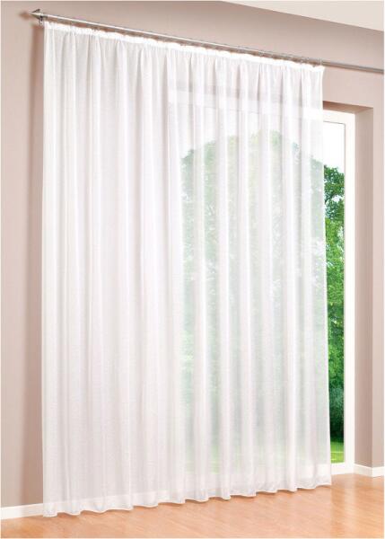Sable fehér függöny 300cm magas, 185cm széles, tetején ráncolóval, amivel a kívánt méretre behúzható, hátoldalába kampókat akaszthatunk, de csipesszel is felrakható, legalább 1,5x-s ráncolással ajánljuk. Légies fátyolszerű átlátszó sűrűbb szövésű anyag, a lakás bármely ablakára kiváló.
