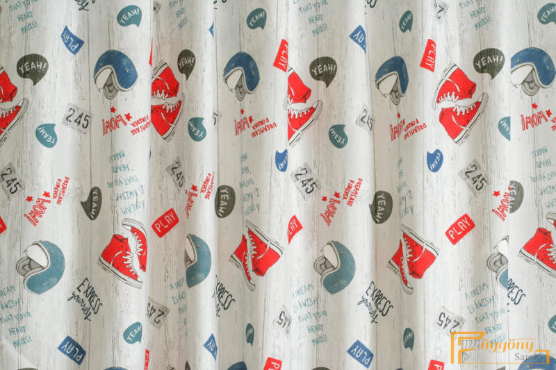 100%polieszter, kb:180cm magas, 400cm széles, tetején ráncolóval, mellyel a kívánt méretre behúzható, alján ólommal, eredeti jogdíjas termék