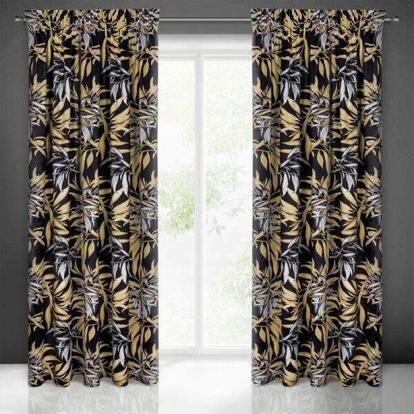Bársony sötétítő függöny nyomtatott mintával, szélesség: 140 cm, hossz: 270 cm, színe: fekete/bézs. Grammsúly: 200 GSM. Összetétel: 100% poliészter