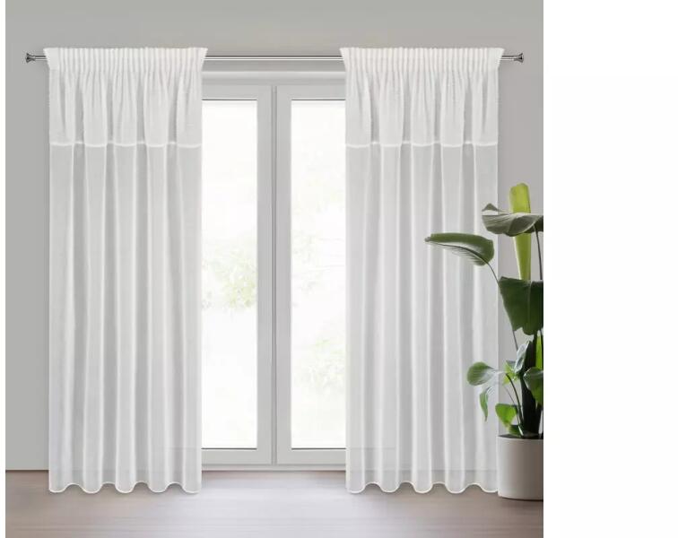 dekoratív szövet Rongo, 100 % poliészter, sima, nem gyűrődő, színstabil szövet, felvarrt univerzális ráncolószalag, szegélye beszabva, csipeszre vagy kampóra rögzíthető.