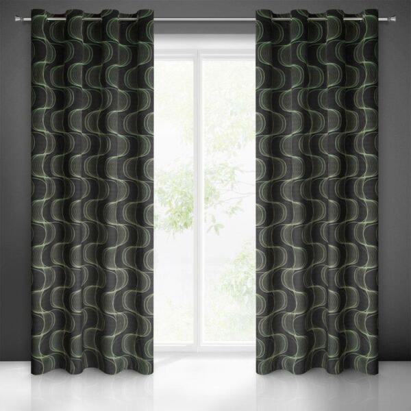 Bársony sötétítő függöny ezüst nyomtatott mintával, szélesség: 140 cm, hossz: 250 cm, színe: fekete/olívazöld. Grammsúly: 200 GSM. Összetétel: 100% poliészter