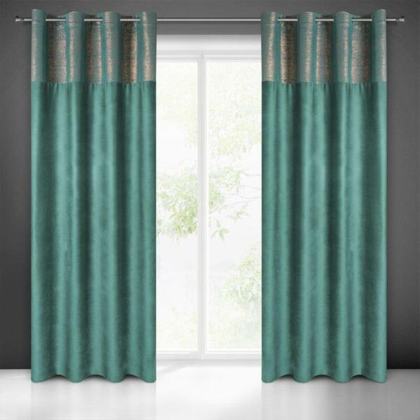Bársony sötétítő függöny réz hatású nyomtatott mintával, szélesség: 140 cm, hossz: 250 cm, színe: sötét türkiz. Grammsúly: 200 GSM. Összetétel: 100% poliészter