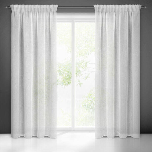 Musette függöny, Mendola Interior, 140x260 cm, Zsebkendő, Ezüst-fehér Részletek: A Musette függöny biztonságos választás, ha egyszerű, de hatékony függönyről van szó. Vízszintes, diszkrét mintájával a Musette egy könnyen integrálható függöny különféle elrendezésekben. Befogás módja: Visszahúzás: - Sínre szorítás lovasok segítségével / Sín látható vagy rej