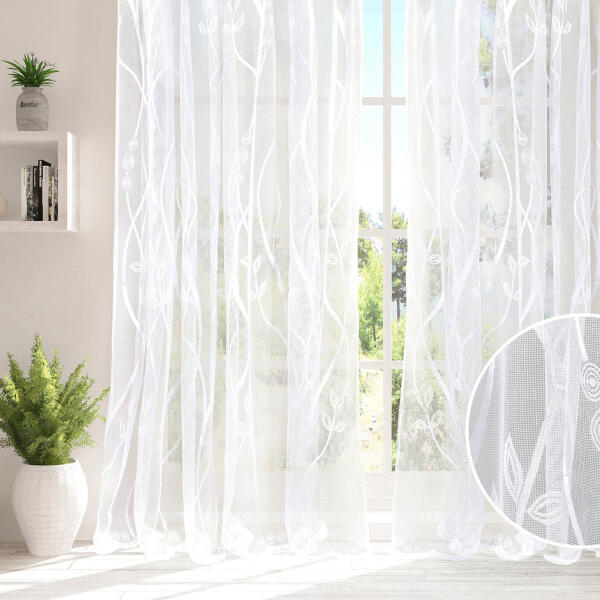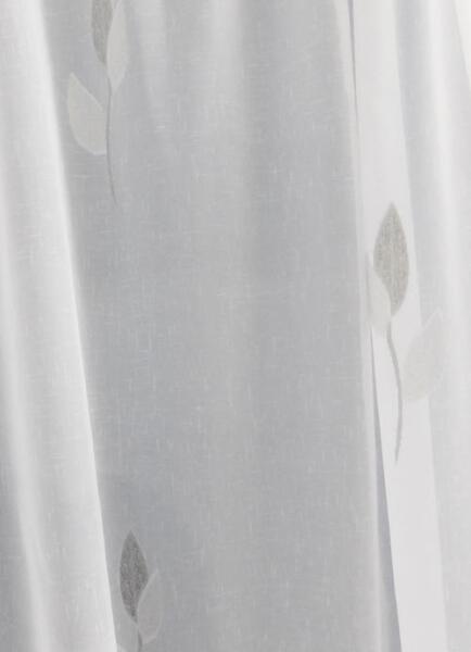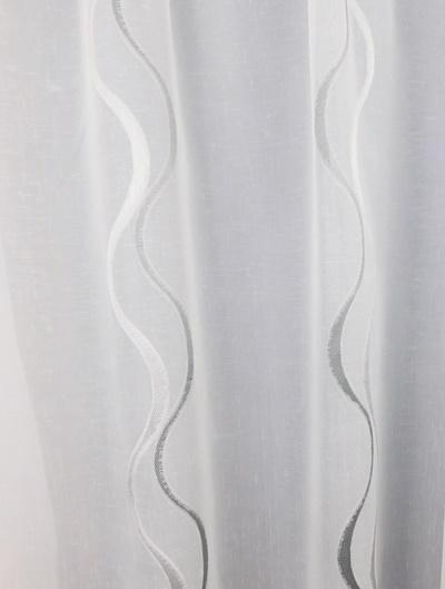 100%polieszter, 100cm magas, 90cm széles, tetején bújtatóval, pálcára fűzhető, modern nyírt mintázatú törtfehér alapú voila kész függöny, vasalást nem igényel,
