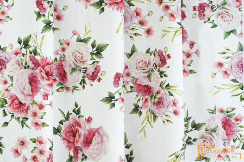 pamut drapéria, felvarrt univerzális ráncolószalag, szegélye beszabva, 100 % pamutszövet, súly 145g/m2, csipeszre vagy kampóra rögzíthető.