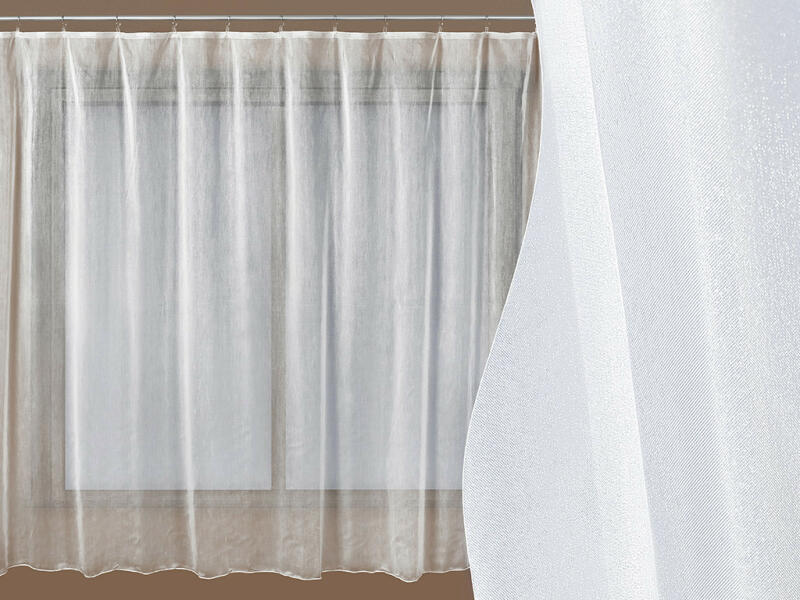 Fehér színű, virágmintás, bordűrös jacquard vitrázs, amely szín- és mintavilágával természetközeli és kellemes hangulatot varázsol az otthonába. Az egyszerűségének köszönhetően bármilyen színű sötétítőfüggönnyel jól mutat. Kezelése egyszerű, nem igényel vasalást. Összetétele poliészter.