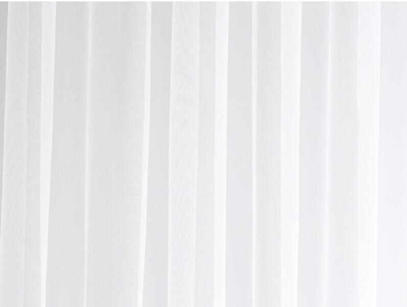 Termék részletekFehér egyszínű fényes fényáteresztő függöny, alján ólomzsinórral. Összetétele poliészter. A függönyt az áruházban az Ön által kívánt méretre vágják.