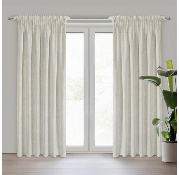 Termék részletekkész dekoratív drapéria Loneta, Spanyol szövetből varrva, súly 190g/m2, felvarrt univerzális ráncolószalag, szegélye beszabva, csipeszre vagy kampóra rögzíthető.