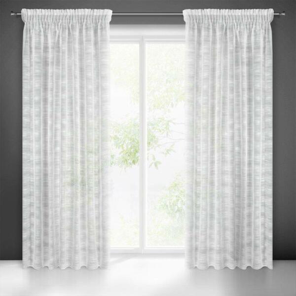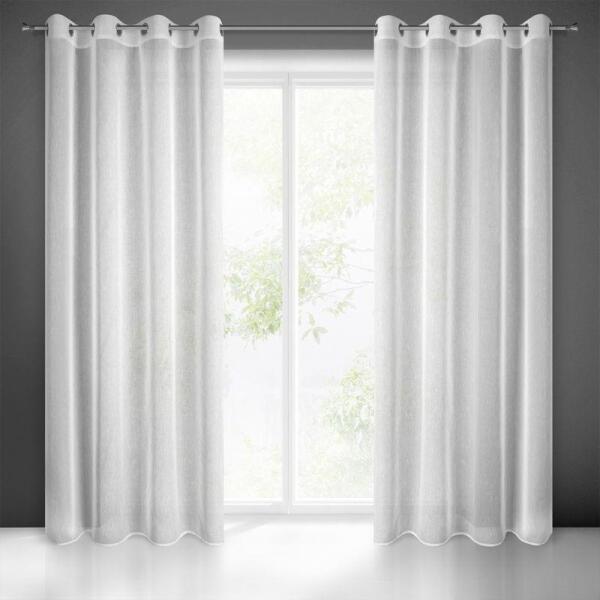 Termék részletekEgyszínű készfüggöny eső szerkezetű anyagból, szélesség: 140 cm, hossz: 250 cm, színe: fehér. Grammsúly: 70 GSM. Összetétel: 100% poliészter