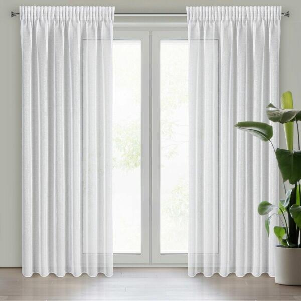 Termék részletek100%polieszter, kb:180cm magas, 350cm széles, tetején ráncolóval, amivel a kívánt méretre behúzható, hátoldalába kampókat akaszthatunk, de csipesszel is felrakható, legalább 1,5x-s ráncolással ajánljuk, az alján található ólom tartást biztosít a függönynek, Légies fátyolszerű átlátszó sűrűbb szövésű anyag, a lakás bármely ablakára kiváló,