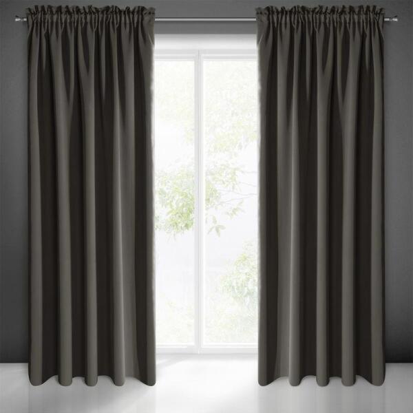 Termék részleteksötétítő drapéria, súly 260g/m2, nem engedi át a napfényt, megakadályozza a zaj behatolását, felvarrt univerzális ráncolószalag, szegélyei beszabva, csipeszre vagy kampóra rögzíthető.