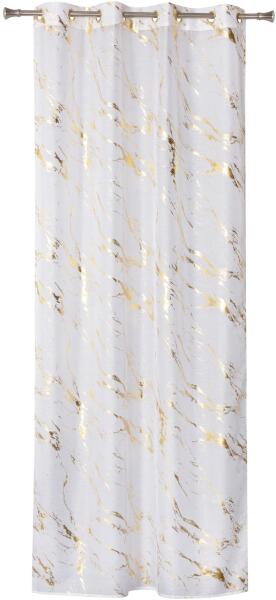 Termék részletekSplendid Storm gyűrűs függöny, 140 x 260 cm, 100% poliészter, fehér/arany Jellemzők: érdekes márványminta;elbűvölő stílusú belső terekhez illeszkedik;könnyen felakasztható a 8 gyűrűs készletnek köszönhetően. Karbantartási utasítások: mosás 30°-on;Ne használj fehérítőt;ne szárítsa gépben;vasalja alacsony hőmérsékleten.