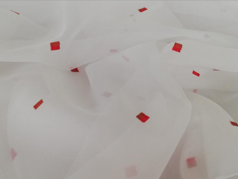 Termék részletekdekoratív szövet Rongo, 100 % poliészter, sima, nem gyűrődő, színstabil szövet, felvarrt univerzális ráncolószalag, szegélye beszabva, csipeszre vagy kampóra rögzíthető.