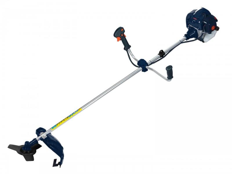 Jellemzői: Garancia: 3 év Teljesítmény: 2,5LE Motor térfogata: 43cm³ Üzemanyagtartály térfogata: 1,2l Vágóelem: kés, zsinór Orsó rögzítés: M10 x 1,25 LH Motorciklus: 2 ütemű Motor típusa: benzin Üzemanyag: AI-92 és olaj keverékeÜzemanyag fogyasztás maximális terhelés mellett: 1,2 l/h Tekercs típusa: félautomata Rúd típus: két darab Zajszint: 110 dB Orsó fordulatsz