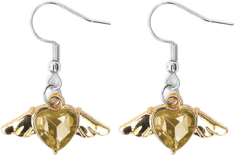 Anyaga fémötvözet és kristály. Pezsgőszínű kristály szív angyalszárnnyal fülbevaló. Param éterek: Medál / mérete kb. 2,5 cm. Anyaga fémötvözet. Akasztó rozsdamentes acél.