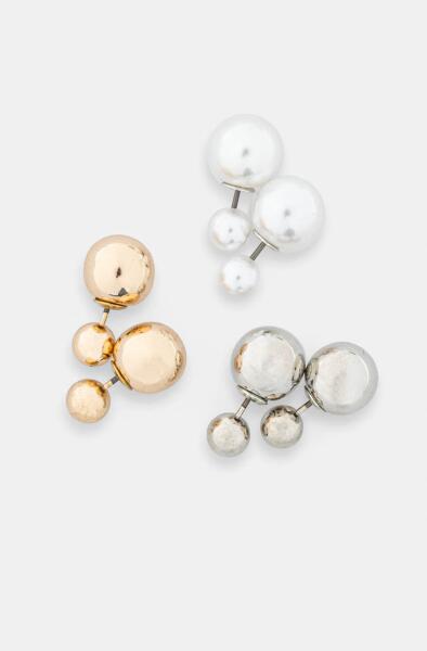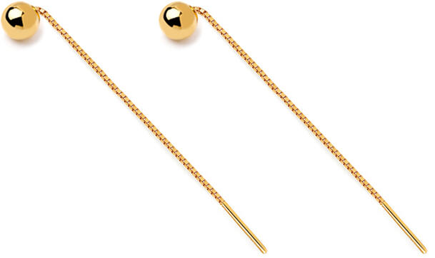 Eredeti fülbevaló, amely láncos kivitelezésével és szilárd végződésével kelti fel a figyelmet, amelyet át kell fűzni a fül lyukán. Apró, arany golyók díszítik, amelyek bármilyen alkalomkor sikert aratnak. Az arany felülete magasfokú polírozással kezelt.