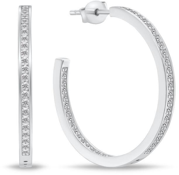 Victoria Ezüst színű fehér köves karika fülbevalóEzüst színű. Anyaga: rozsdamentes acél1 pár fülbevaló Victoria Ezüst színű fehér köves karika fülbevalóEzüst színű. Anyaga: rozsdamentes acél1 pár fülbevaló