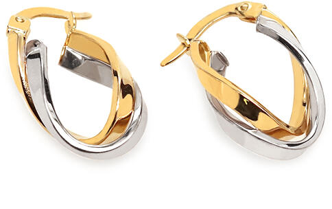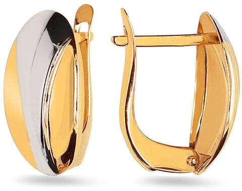 Szemet gyönyörködtető ovális fülbevaló fehér és sárga arany kombinációjából. A fülbevaló ovális alakú, két vonal alkotja, ovális keresztmetszetű, kétszínű tónusban.