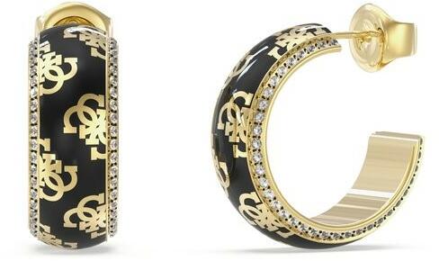Női fülbevaló Guess JUBE02278JWYGBKT a finom elegancia minden kedvelőjének tetszeni fog. A kis félkör alakú fülbevalók tűkkel vannak rögzítve. Kiváló minőségű sebészeti acélból készültek, ami biztosítja szilárdságukat és tartósságukat. A modell arany színű kivitelezése kontrasztban áll a külső rész fekete árnyalatával. A fülbevalót a Guess logó motívum eg