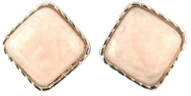 Elegáns női fülbevaló. A gyöngyház színű követ egy szép ezüst színű szegély veszi körül.