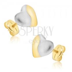Arany fülbevaló mely lekerekített szabályos szívből áll, egyik fele matt szürke színű fénymázzal díszített, a másik fele tükörfényű és sárga aranyból készült. Biztonságos viselését stekker biztosítja. A fülbevaló méretei: 8 x 7 mmA fülbevaló súlya: 0,6 gFémjelzéssel ellátott. Az ár egy párra vonatkozik.