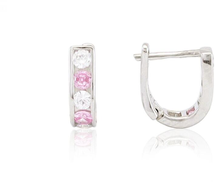 Ez az egyik legcsillogóbb fülbevalónk! A ródiumbevonattal ellátott 925-ös tisztaságú ezüstből készült fülbevalóban a rózsaszín és fehér kis cirkónia kövek gyönyörűen szikráznak a rájuk eső fényben. Ezüst gyermek fülbevaló franciazáras 3mm széles rózsaszín és fehér kövekkel ródiumbevonatosAnyaga: 925 ezüstBevonat: ródiumbevonatosSzélesség: 3mmBelső hasznos