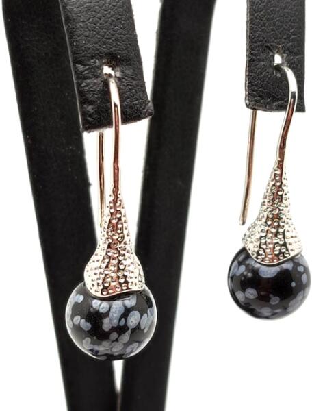 Obszidián obszidián hópehely fülbevaló (lógó golyó kürt mintás Ásvány fülbevaló) Amit az obszidiánról érdemes tudnod: Sötét téli este, még a Hold sem világít. Kinézünk meleg lakásunk ablakából és látjuk az utcai lámpa fényénél, hogy nagy, kristályos szemekben szállingózik a hó. Ilyen hatású a hópehely obszidián megjelenése is. Az obszidián vulkanikus kő