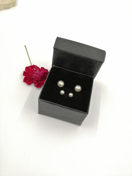Bedugós bizsu gyöngyház szín 2 párt tartalmazó fülbevalószett, díszdobozban. Az egyik fülbevalópár 6 mm átmérőjű gyöngyből készült, a másik pár 4 mm átmérőjű apró gyöngyökből. A bedugós fülbevalók hátul szilikon gumitappanccsal és ezüst fülbevalózáróval záródnak. A fülbevalókat a képen látható ajándék díszdobozban küldjük ki a vevőnk :)