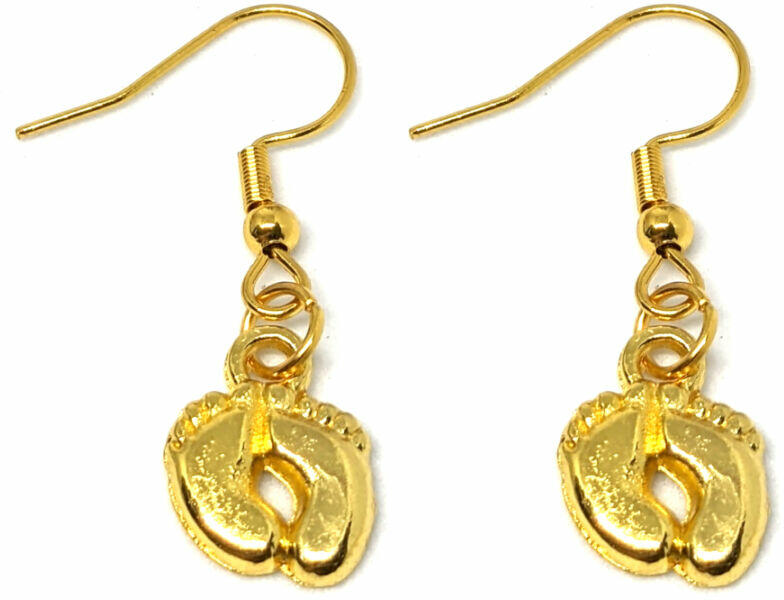 Babatalp fülbevaló. Paraméterek: A függő mérete 1,3x1 cm. A színe arany, anyaga fémötvözet. Akasztó rozsdamentes acélból készült.