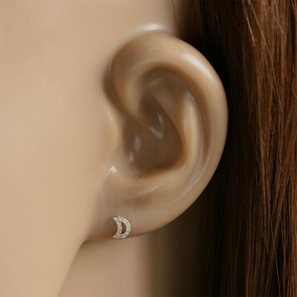 A 9K sárga arany fülbevalót egy kivágással ellátott félhold alkotja. A félhold egész körvonalát kicsi csillogó, kerek cirkóniák díszítik. A cirkóniák átlátszóak. Fülbevaló stekkeres zárszerkezettel. A fülbevaló mérete: 4 x 6 mmA fülbevaló súlya: 0,3 gFémjelzéssel ellátva. Az ár egy párra vonatkozik.